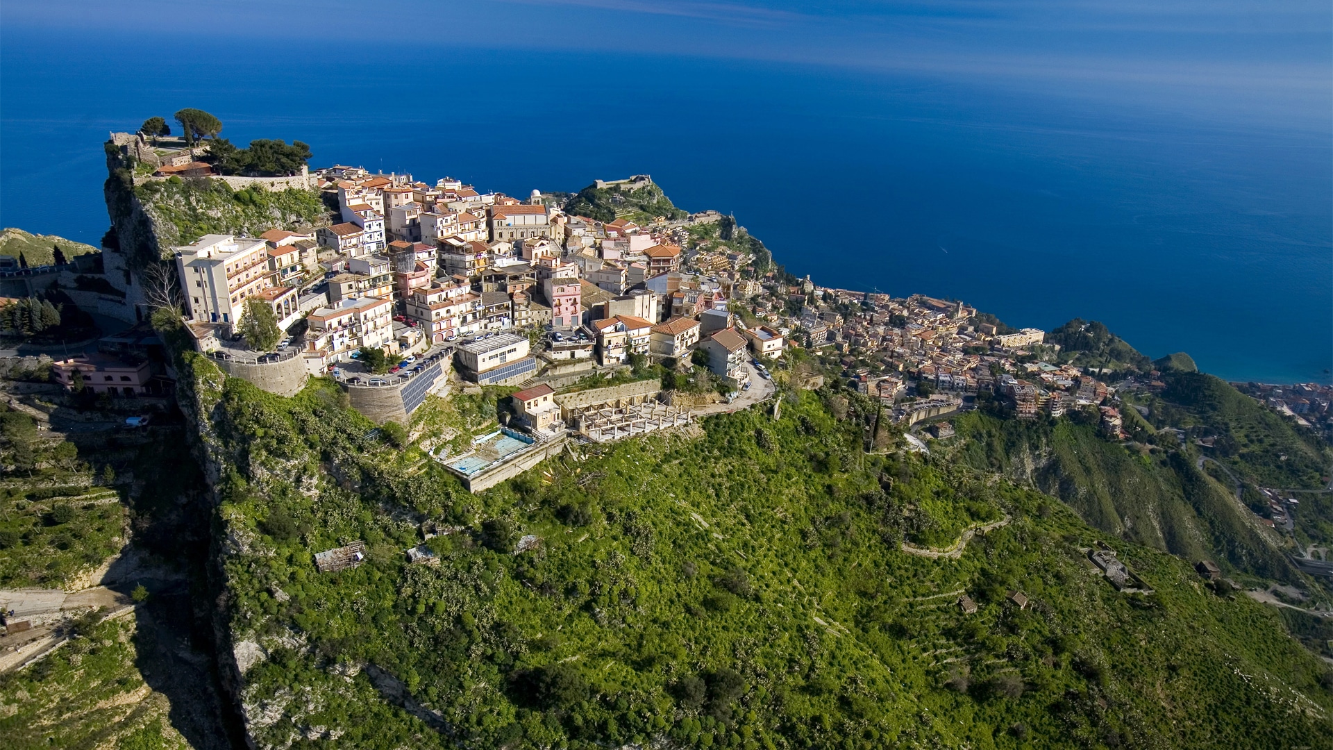 «Iniziamo il giro del paese da piazza Sant’Antonino dove c’è un meraviglioso belvedere che dà su Taormina. Dalla piazza si può salire verso il Castello, che si trova ancora più in alto e da cui si può ammirare il panorama a 360° e che spazia dalla Calabria al mare, dal Golfo di Naxos all’Etna. Questo è uno dei posti più importanti per noi ed infatti abbiamo investito molto in restauro e lavori pubblici. L’arco romano era uno dei punti di accesso alla città. L’antico borgo non era dove si trova adesso; l’impianto urbano si trovava nella parte bassa della città. Dopo le incursioni dei saraceni, come sistema difensivo, gli abitanti si sono arroccati sul castello nella parte alta. Un piatto tipico della nostra cucina sono i “maccaruni” fatti in casa con il ragù, che cuoce circa 5-6 ore. Poi ci sono le “cuddure” (ciambelle pasquali fatte con le uova) e il pane “cunzato”. Inoltre, il nostro prodotto tipico è il vino alla mandorla.»