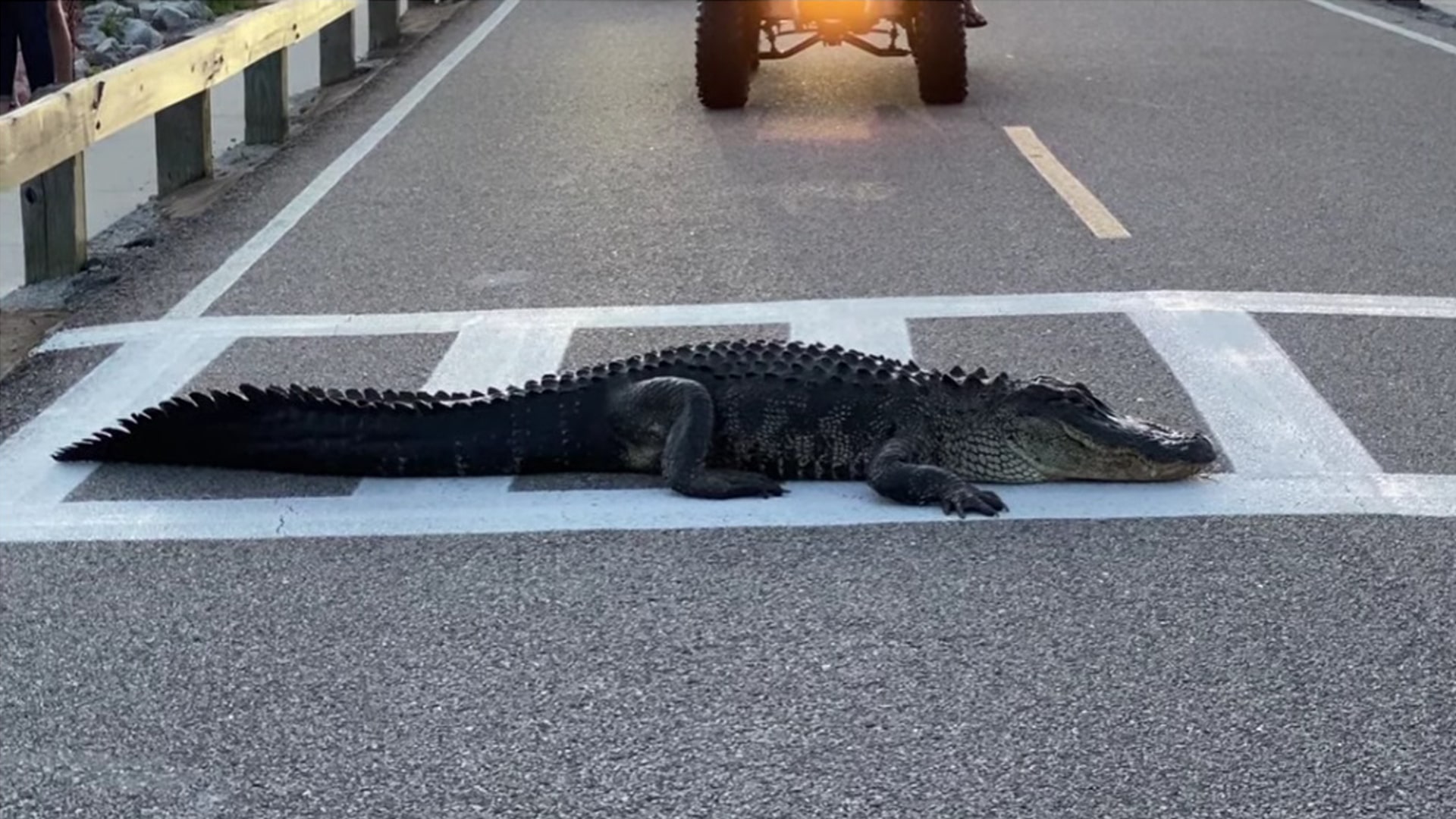 In un video le insolite immagini di un alligatore che attraversa la strada sulle strisce pedonali.