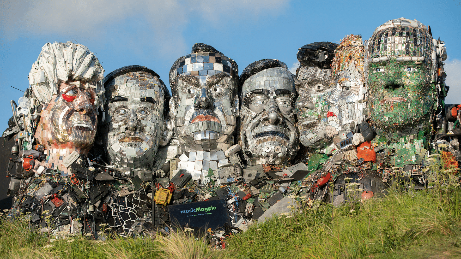 Qualcosa di simile e di altrettanto imponente è comparso nei giorni scorsi in Cornovaglia, ed è opera di un’artista di nome Joe Rush. La struttura – realizzata interamente con scarti derivanti da discariche di rifiuti tecnologici – rappresenta i leader del G7 che si incontreranno in questi giorni per parlare di clima ed ambiente.