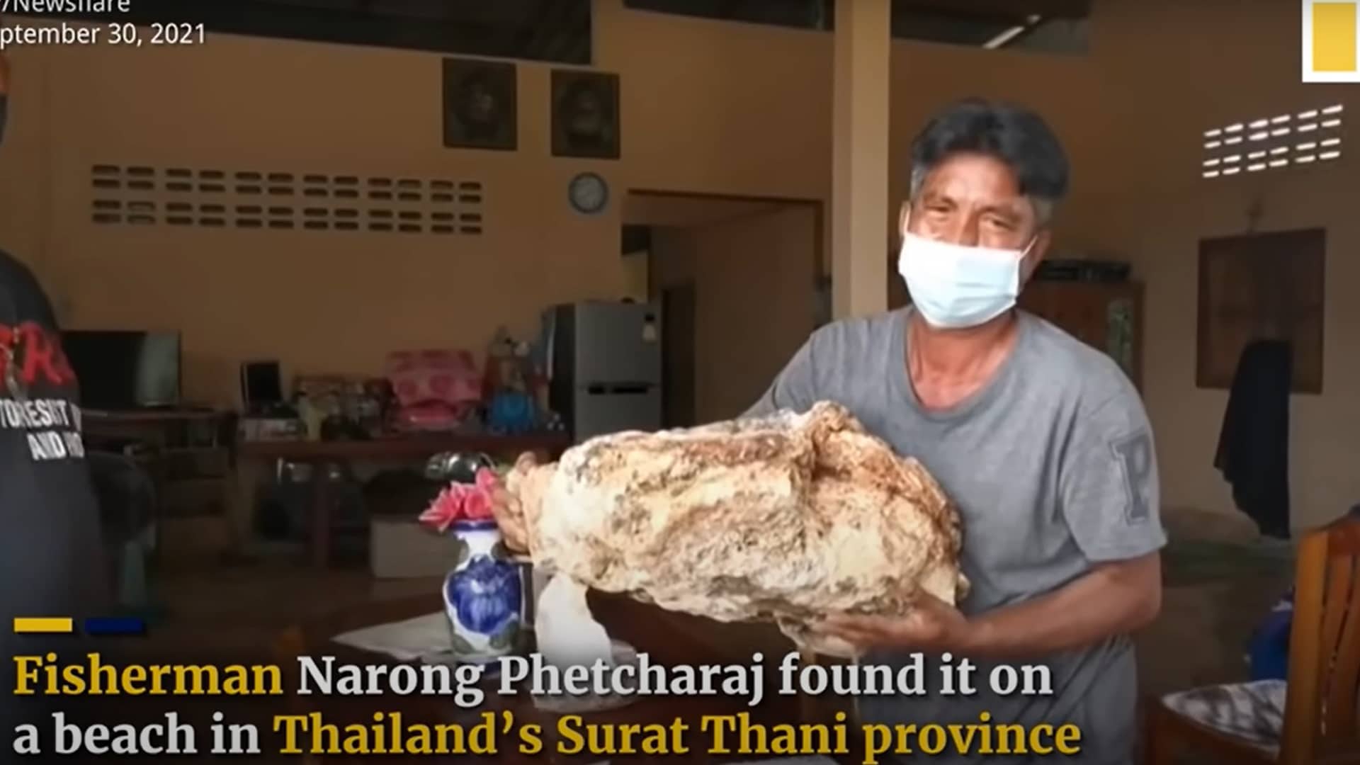 Qualche giorno fa Narong Phetcharaj era a pesca nelle acque della provincia di Surat Thani (Thailandia del sud), quando ha avvistato in mare un enorme ammasso grigio galleggiante. Subito a pensato, e sperato, che potesse trattarsi di vomito di balena.