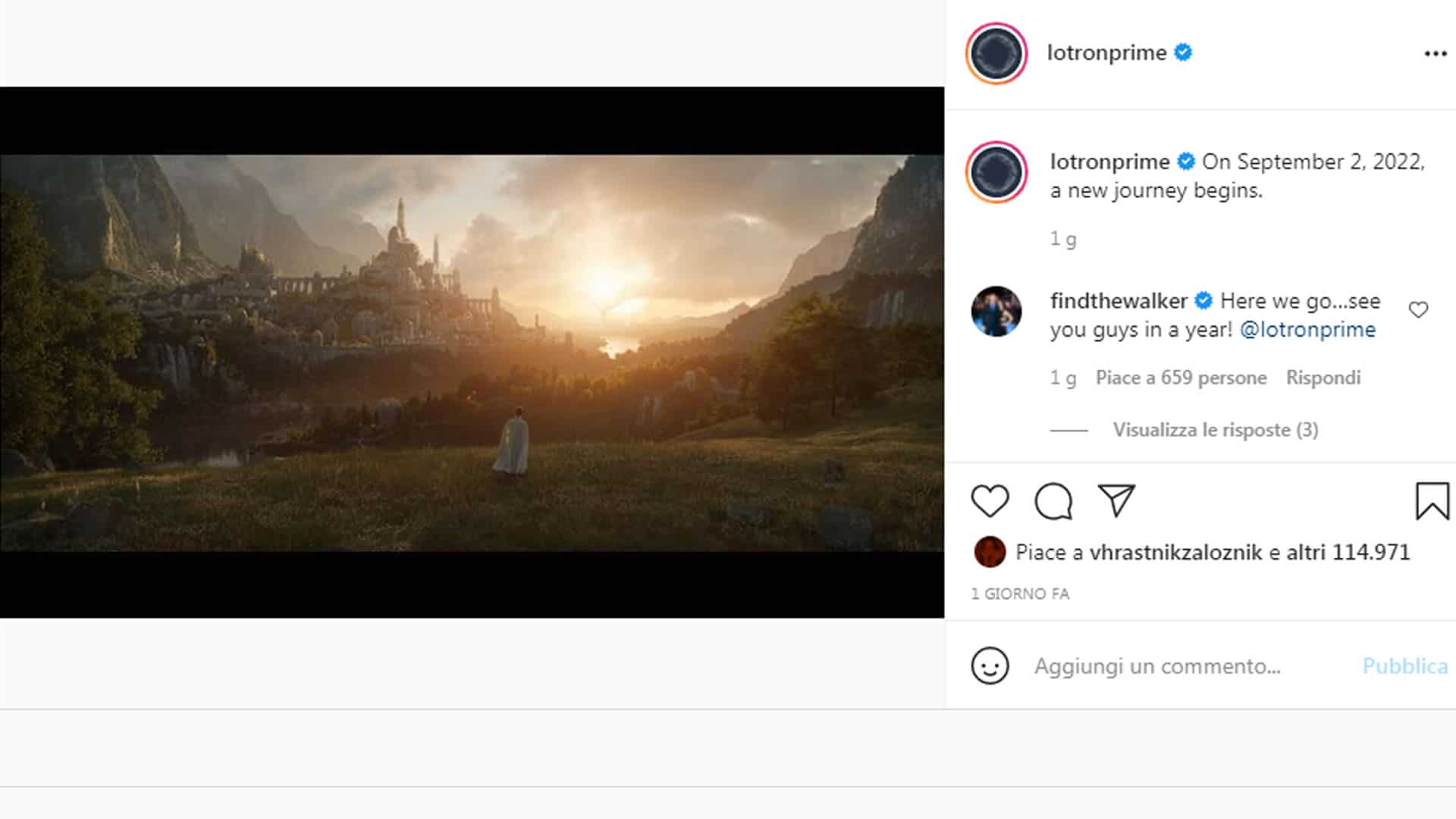 E’ questa la data di uscita della serie tv interamente dedicata al mondo de “Il Signore degli anelli”. L’annuncio è arrivato direttamente attraverso il profilo Instagram ufficiale della serie.