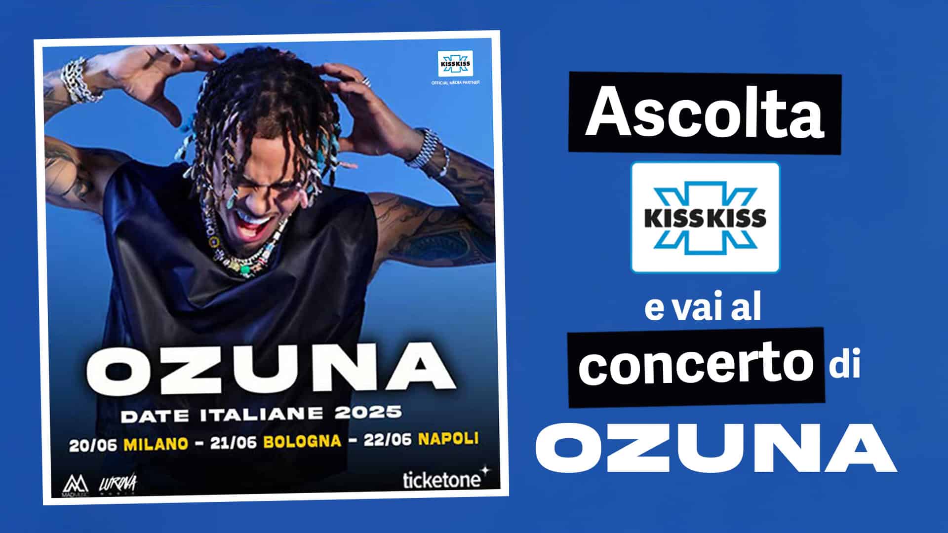 Ascolta Radio Kiss Kiss e, se sei veloce (e fortunato), avrai in regalo i biglietti per il tour italiano di Ozuna, la star mondiale del reggaeton, a Milano, Bologna, Napoli!
