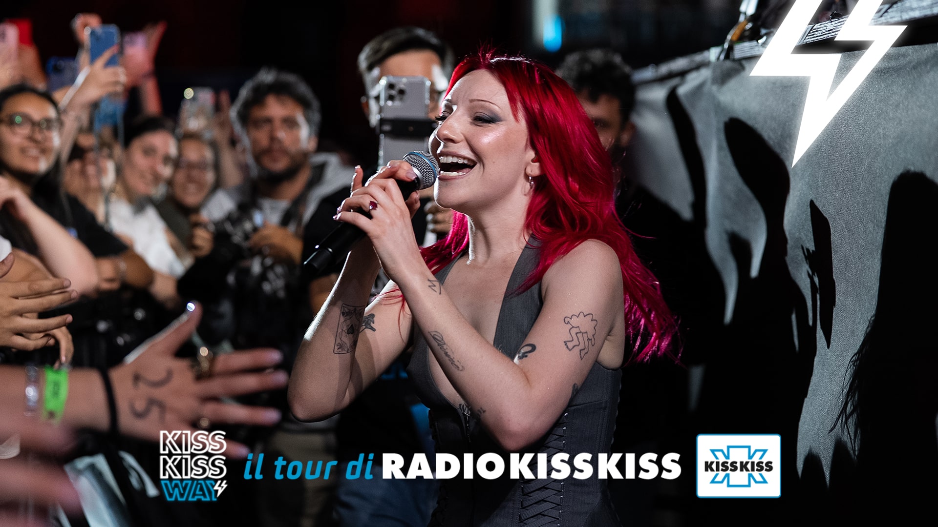 Un momento unico della serata è arrivato con Daniele Doria, ballerino di grande impatto scenico, che ha portato la sua arte in mezzo a un concerto di musica. Coreografie fluide, forza fisica e intensità emotiva hanno fatto da ponte tra i set musicali, regalando al pubblico uno show visivo di altissimo livello. Doria, applaudito a scena aperta, ha unito tecnica e passione in una performance che ha sorpreso e coinvolto anche chi non si aspettava un momento danzato in un evento del genere. Il palco del Kiss Kiss Way si è dimostrato, ancora una volta, un contenitore aperto alle arti e ai linguaggi più diversi.